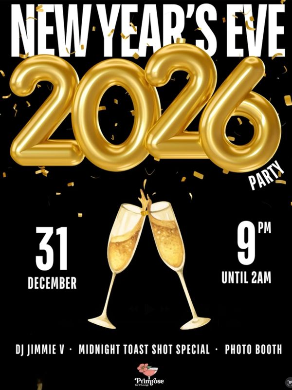 Entry includes a house cocktail drink ticket and complimentary champagne toast at midnight.